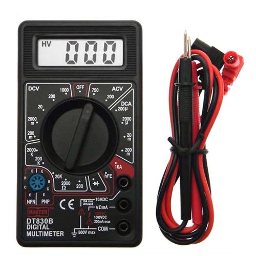 Tester Digitale mod. DT830B amperometro. voltmetro. multimetro Visualizazione digitale LCD Scelta funzioni con commutatore Misurazioni Volt-Ampere-Ohm TENSIONE E CORRENTE: Tensione continua (DCV): +- 0.2% della misurazione + 2 cifre Max: 1000 Vcc Tensione alternata (ACV): +- 2.5% della misurazione + 2 cifre Max: 750 VAc Corrente continua (DCA): +- 2.0% della misurazione + 2 cifre Portata bassa max: 200 mA /Portata alta max:10 A RESISTENZE: Possibilit