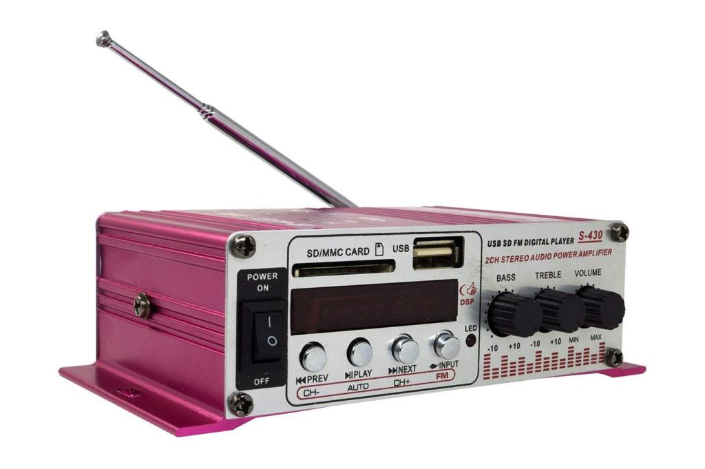 AMPLIFICATORE AUDIO STEREO 12V AUTO CASA USB SD MP3 RADIO FM