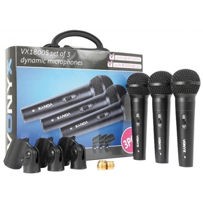 Microfono dinamico cardioide per impieghi generici, ideale per presentazioni, canto, karaoke etc. con schermo antivento incorporato e alloggiamento metallico.il kit 3 in 1 è fornito ad un prezzo molto competitivo, inclusi 3 supporti per microfono in una pratica custodia in abs con spugna protettiva.
