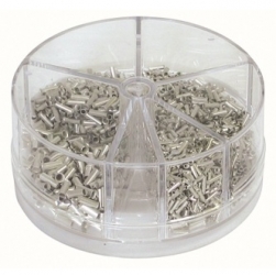 Assortimento terminali a punta non isolati 0,5-2,5 mm2. 1.900 pezzi. Confezione in scatola distribuzione che comprende: 500 x 0,5 mm2 / 500 x 0,75 mm2 / 400 x 1,0 mm2 / 300 x 1,5 mm2 / 200 x 2,5 mm2.