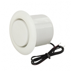Sistemi d'allarme piezo 6-15 V DC Bianca. Caratteristiche tecniche: Tensione d'alimentazione 6-15 V DC / 250 mA max. Protezione contro l'inversione di polarità. Pressione sonora 110 +/- 5 dB ( alla tensione nominale di 12 V DC ). Dimensioni foro di montaggio (DxA) 54 x 55 mm
