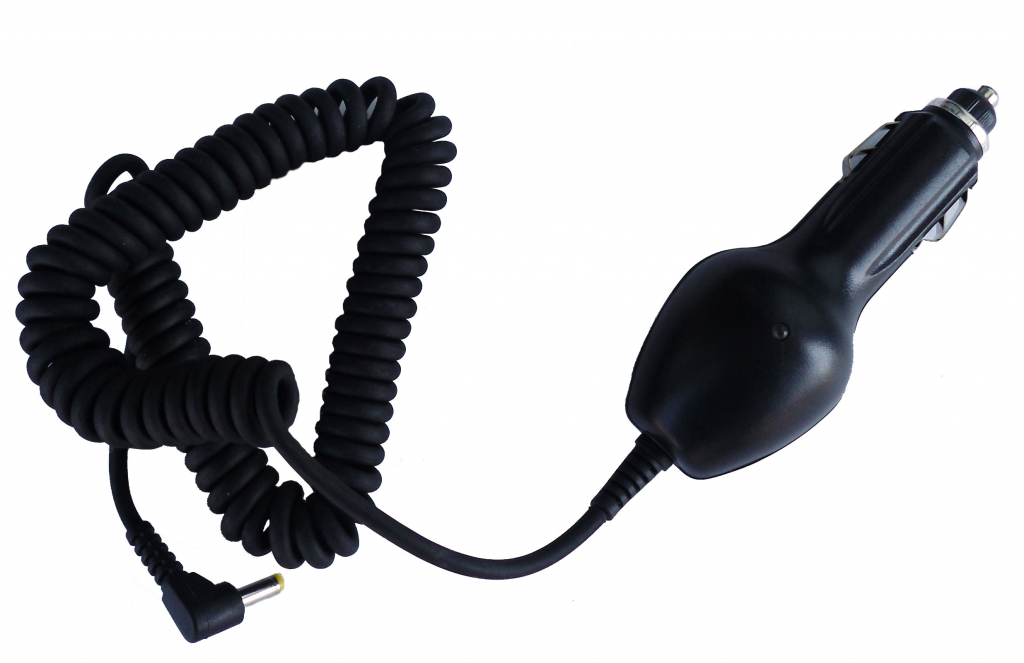 Alimentatore da auto per presa accendisigari 12V con connettore 3.2/1.2 mm ("+" al centro) ed uscita 5V 1A, cavo estensibile spiralato max 1,5 metri. L'involucro esterno è realizzato in plastica di alta qualità.