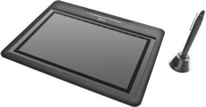 Tavoletta grafica ultrasottile di qualità superiore con ampia area di lavoro di 255 x 160 mm e supporto degli ambienti widescreen, per ritocco fotografico e video, disegni a mano libera e altre applicazioni grafiche Descrizione Tavoletta grafica ultrasottile di qualità superiore con ampia area di lavoro di 255 x 160 mm e supporto degli ambienti widescreen, per ritocco fotografico e video, disegni a mano libera e altre applicazioni grafiche Penna wireless ergonomica a 2 tasti con 1024 livelli di regolazione della sensibilità e apposito supporto per riporre la penna Superficie dal formato widescreen per un supporto ottimale dei monitor widescreen; compatibile anche con gli schermi standard Supporta integralmente le funzioni avanzate per tavolette grafiche di Windows 7 e Vista, come la sensibilità della pressione della penna, la conversione di scrittura manuale in testo digitale e le note su documenti da ufficio 21 tasti funzione aggiuntivi a pressione morbida programmabili e ad accesso diretto Lucido trasparente in dotazione, utile per ricalcare modelli e disegni Software per il disegno e il fotoritocco.