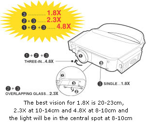 LENTE DA TESTA VISIERA CON MONOCOLO FINO A 4,8X CON LED