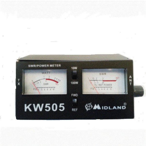 Midland rosmetro wattmetro per la gamma 3,5-150 MHz, portate per la misura della potenza da 1W, 10W e 100W fondo scala. Antenna per la funzione di analizzatore di campo. Rosmetro e Wattmetro, operante sulla gamma di frequenze compresa fra 1.5 e 150 MHz, misura di potenza a due livelli 0W-10W e 0W-100W, connettori SO 239, Dimensioni 135x60x70mm. Peso 280 Gr.