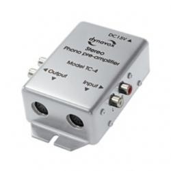 Preamplificatore Phono MM TC-4 stereo argento. Preamplificatore stereo per testine MM. Per collegare un giradischi ad un ingresso di linea normale del proprio amplificatore. Connettori RCA o DIN a 5 pin. Alimentatore esterno in dotazione. Caratteristiche tecniche: Sensibilità d'entrata 5 mV / 100 Kohm / 1 KHz. Sensibilità d'entrata max 30 mV. Sensibilità d'uscita 450 mV / 100 Kohm / 1 KHz. Banda passante 18 Hz - 20 KHz. Segnale rumore > 50 dB. Alimentazione 230 V AC / 50 Hz incluso. Dimensioni (LxPxA) 100 x 65 x 35 mm. Peso 0,2 Kg. Colore argento.